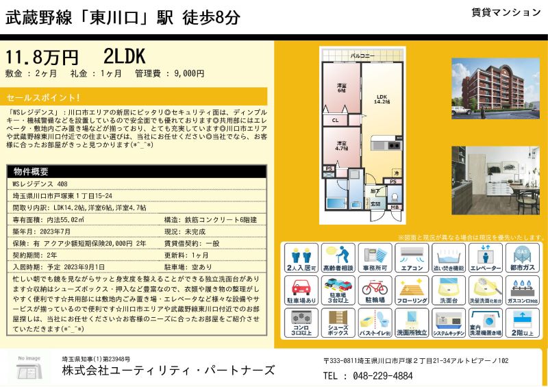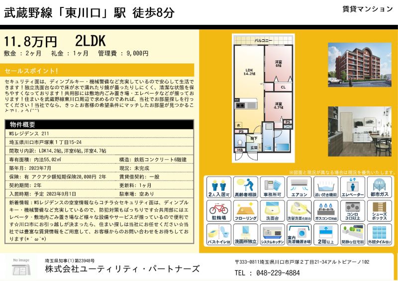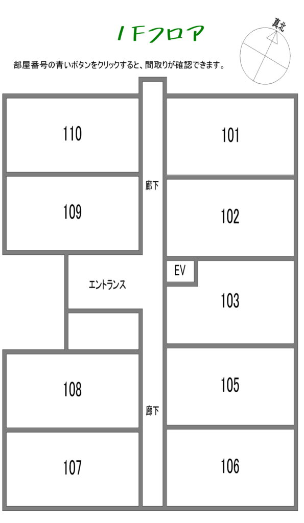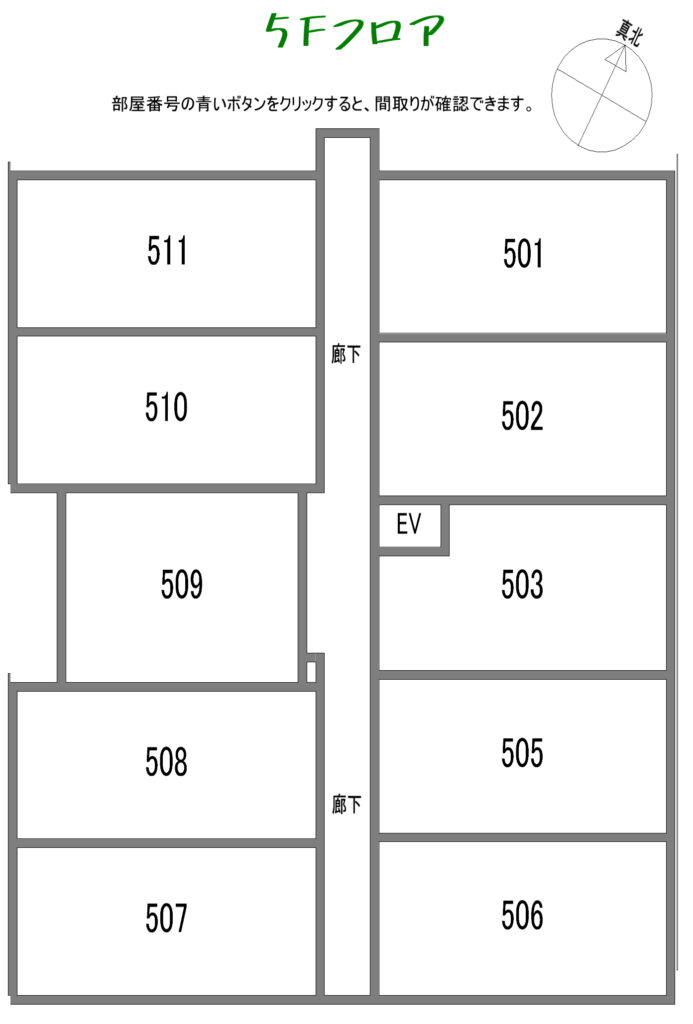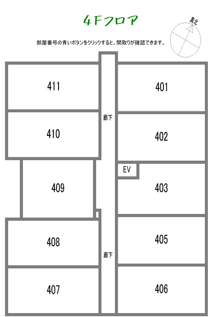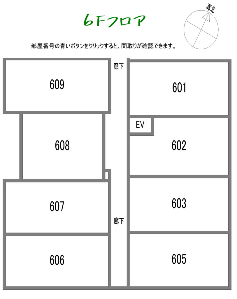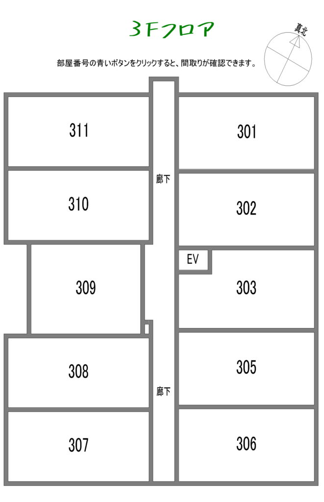 空室は青ボタン、契約済の部屋は赤ボタンで表示してあります。