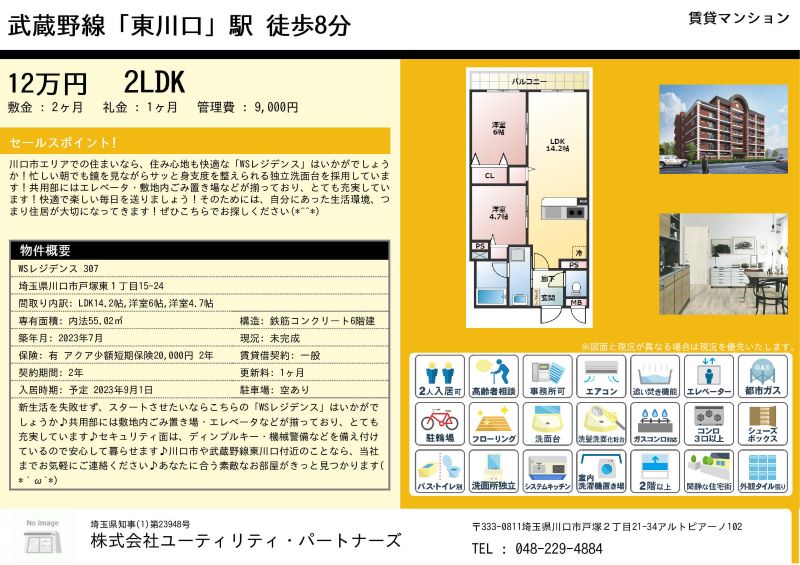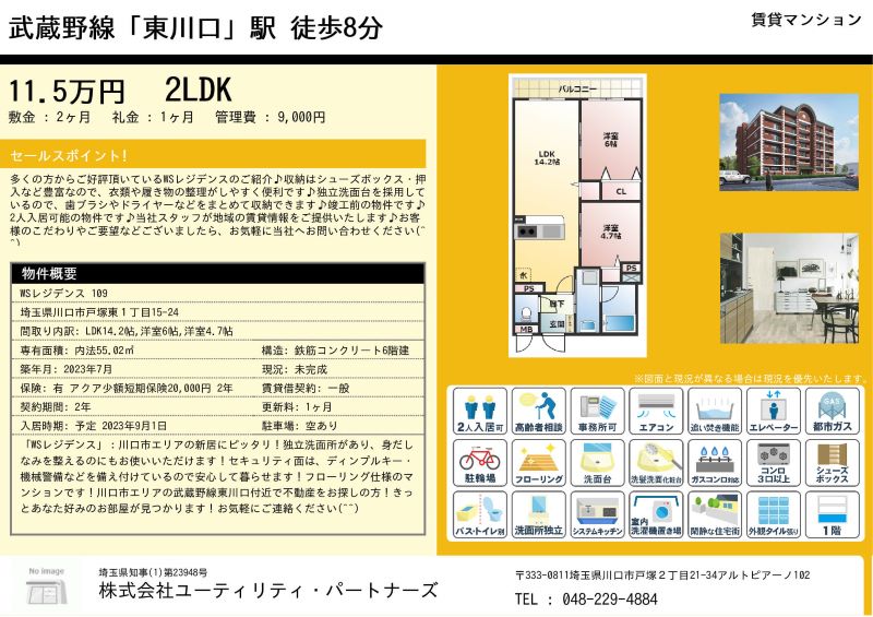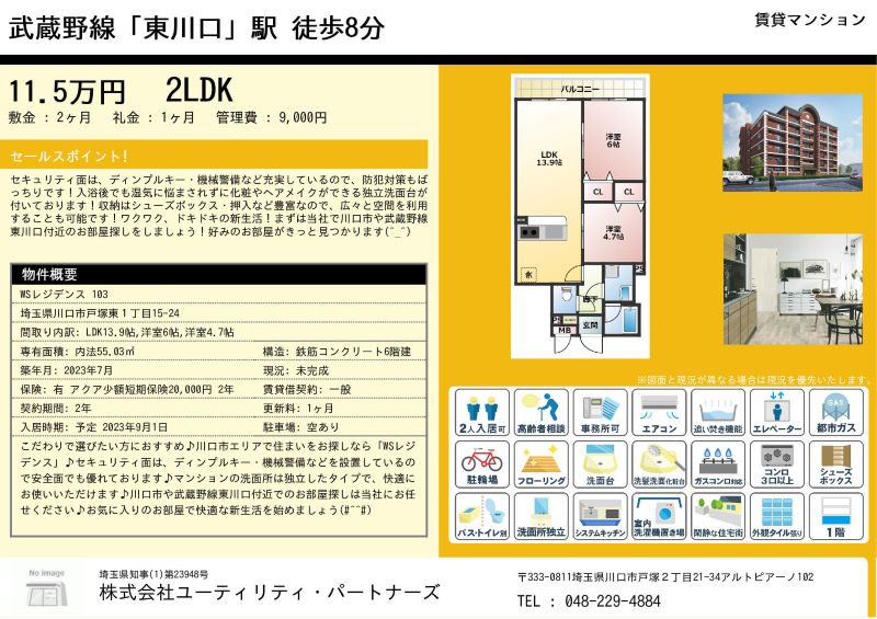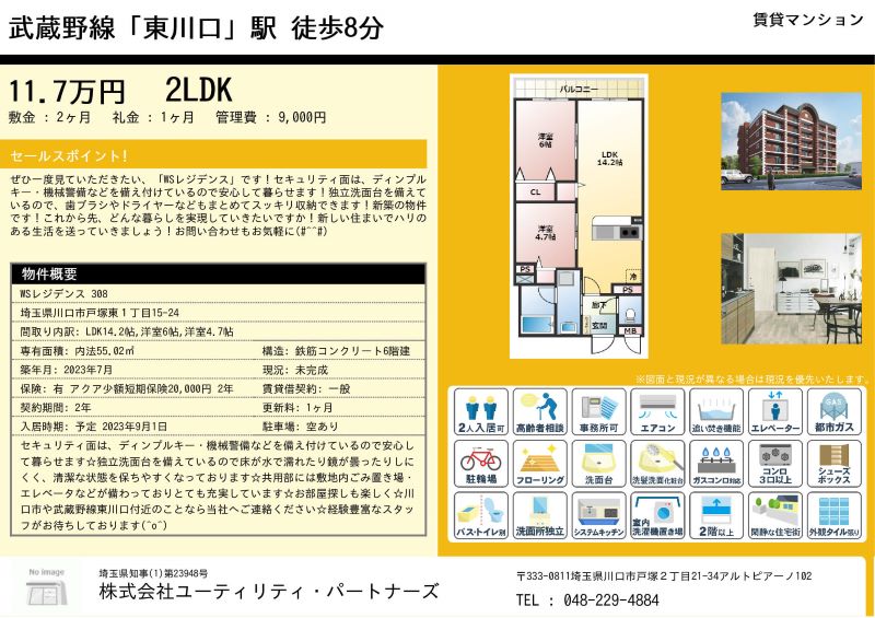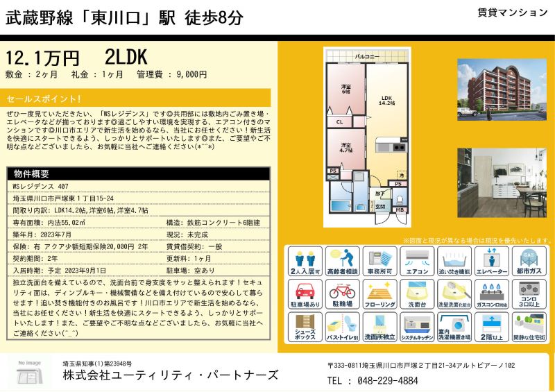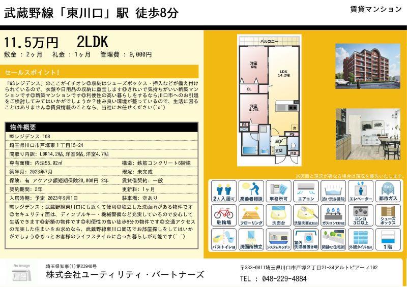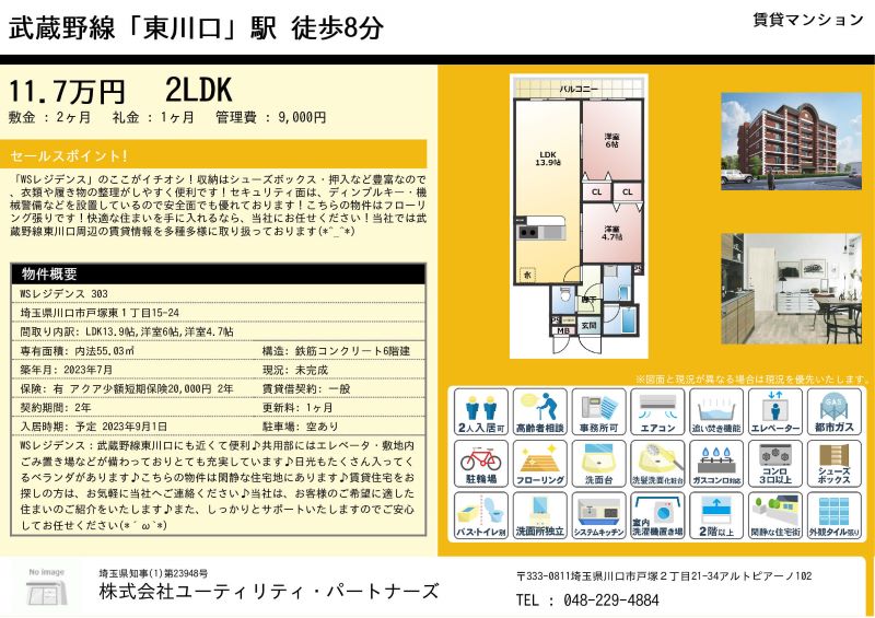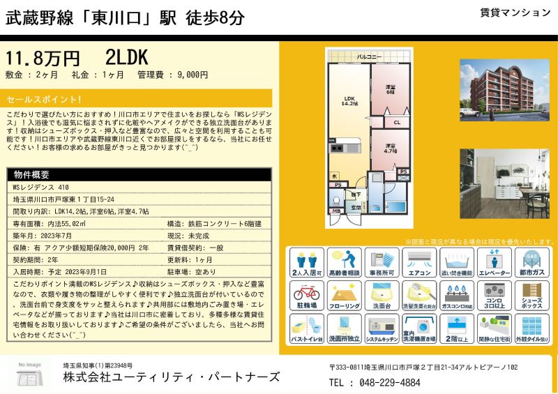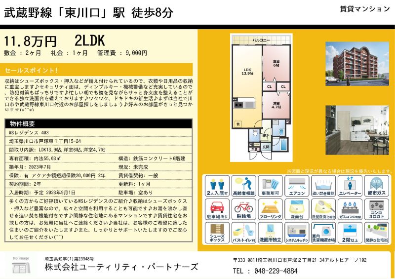 空室は青ボタン、契約済の部屋は赤ボタンで表示してあります。