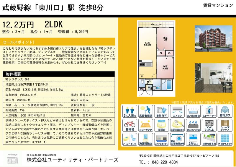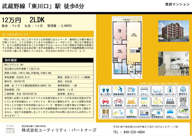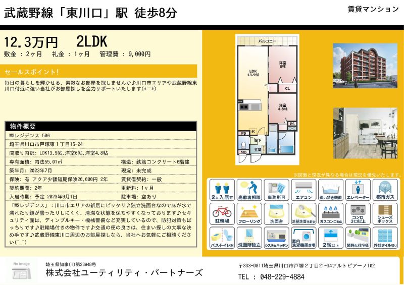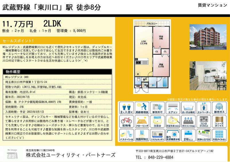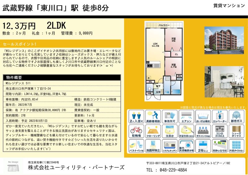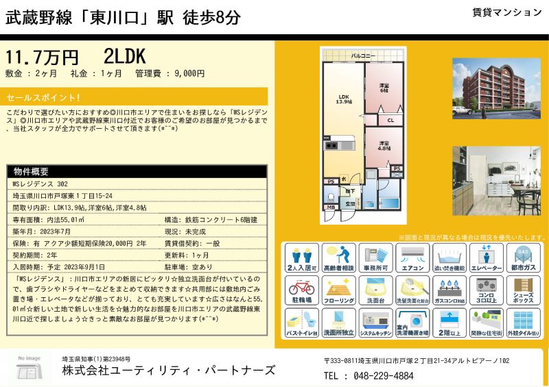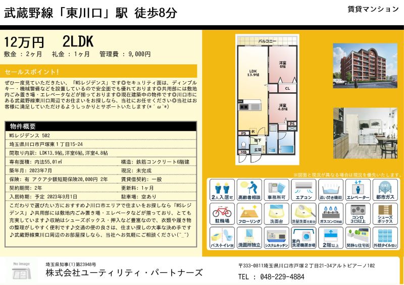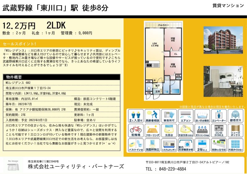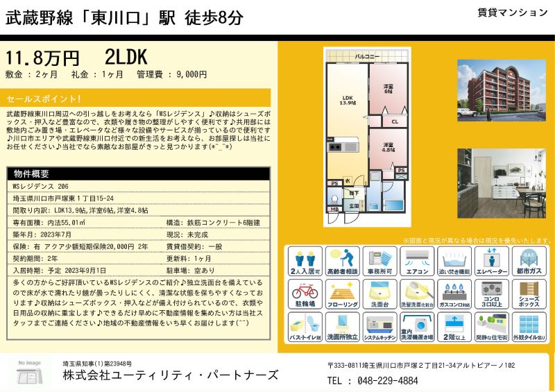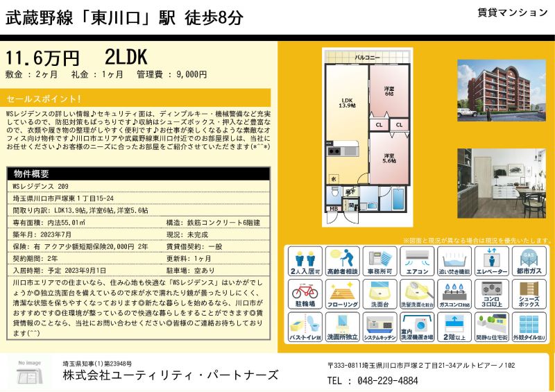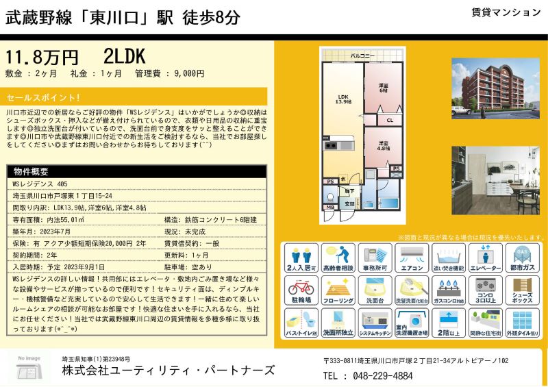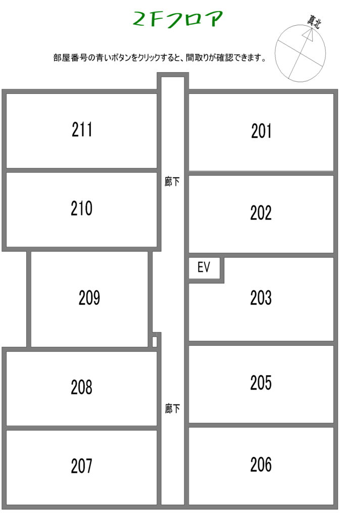 空室は青ボタン、入居済の部屋は赤ボタンで表示してあります。